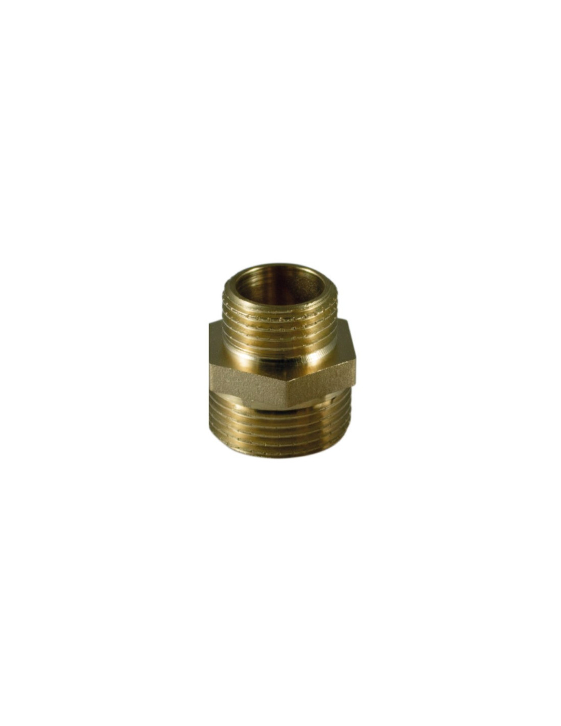Machón de latón reducido doble rosca macho 1/4" x 1/8".