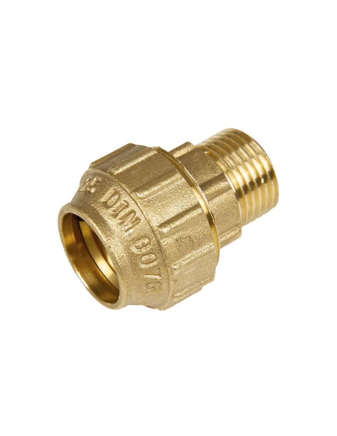 Accesorio de polilatón de DN 25 x ¾" rosca macho, aplicable para realizar la transición de tubo PE a un elemento roscado en sistemas de jardinería, agrícola, fontanería y conducciones de agua en general.