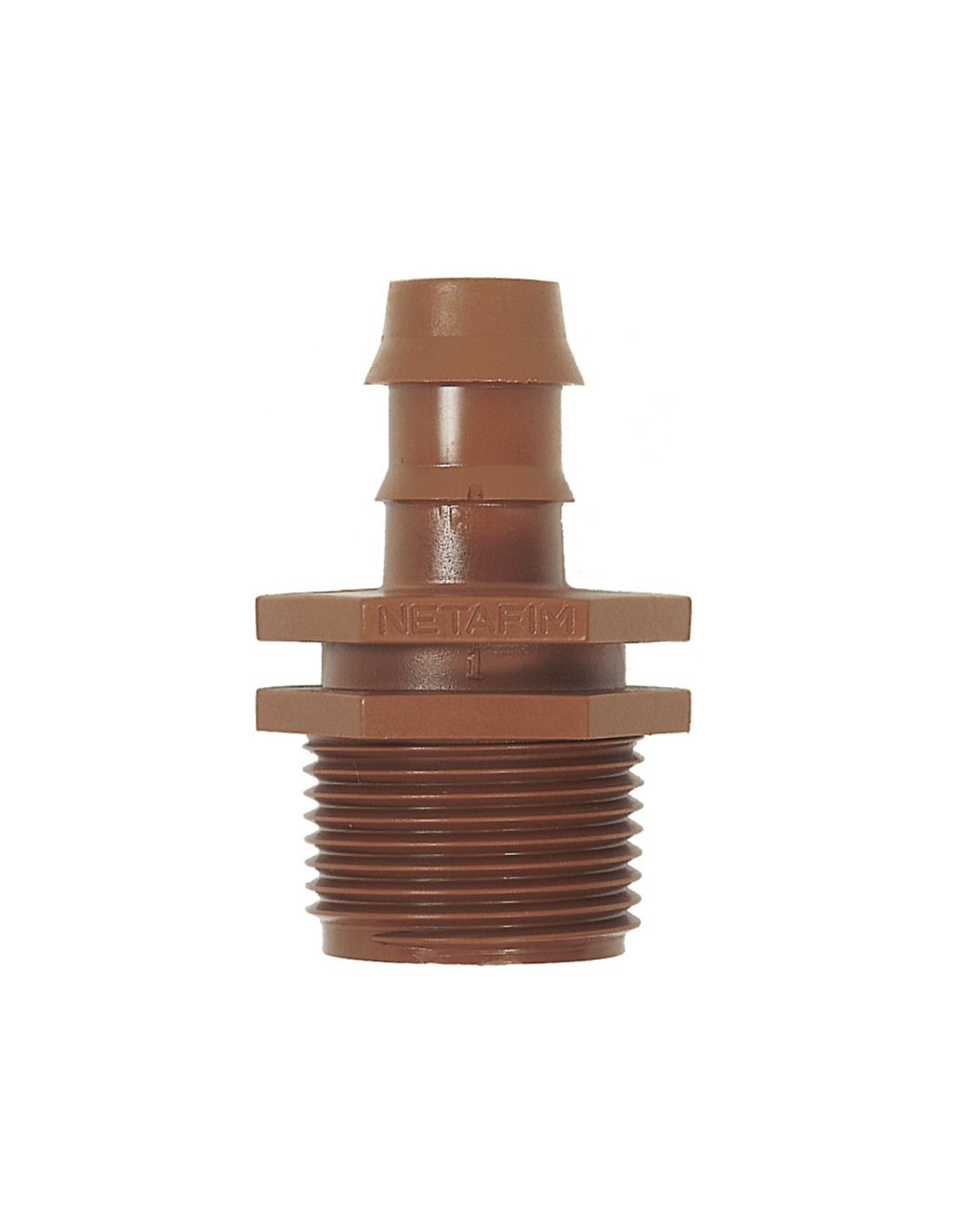 La espiga marrón de 17 a ½" permite conectar tubería de goteo a elementos con rosca, como filtros, programadores o electroválvulas.