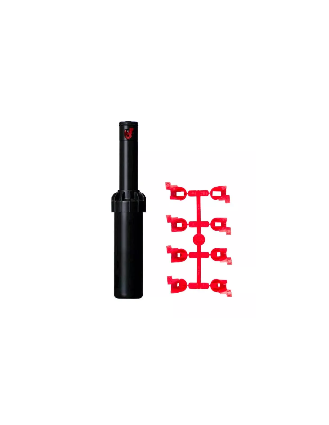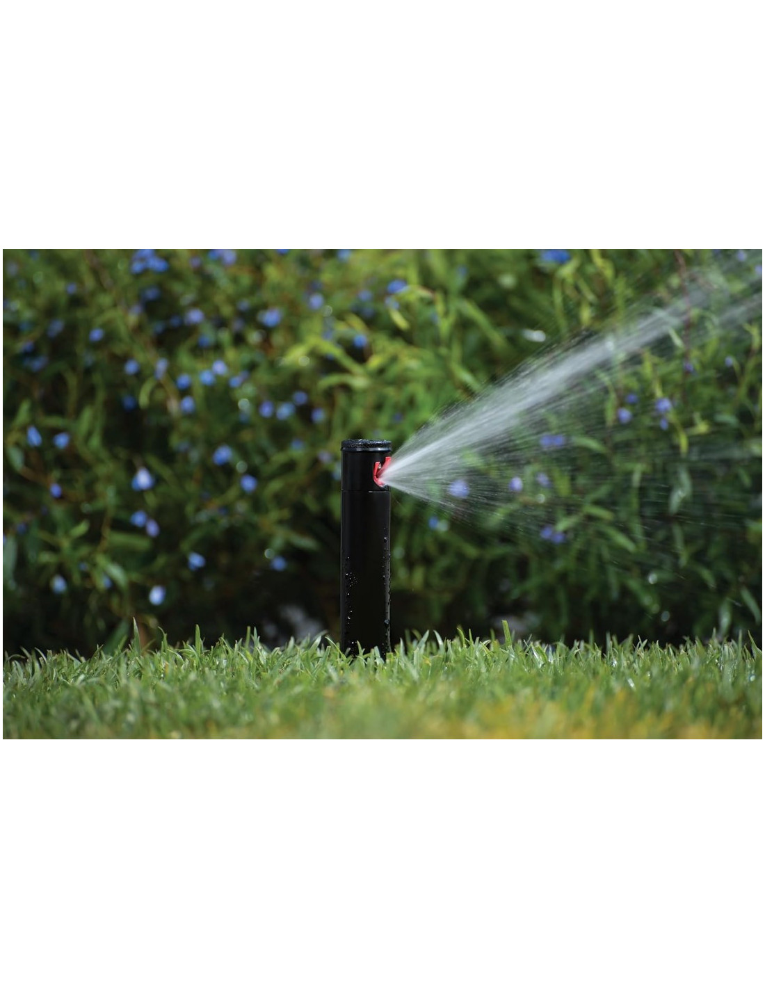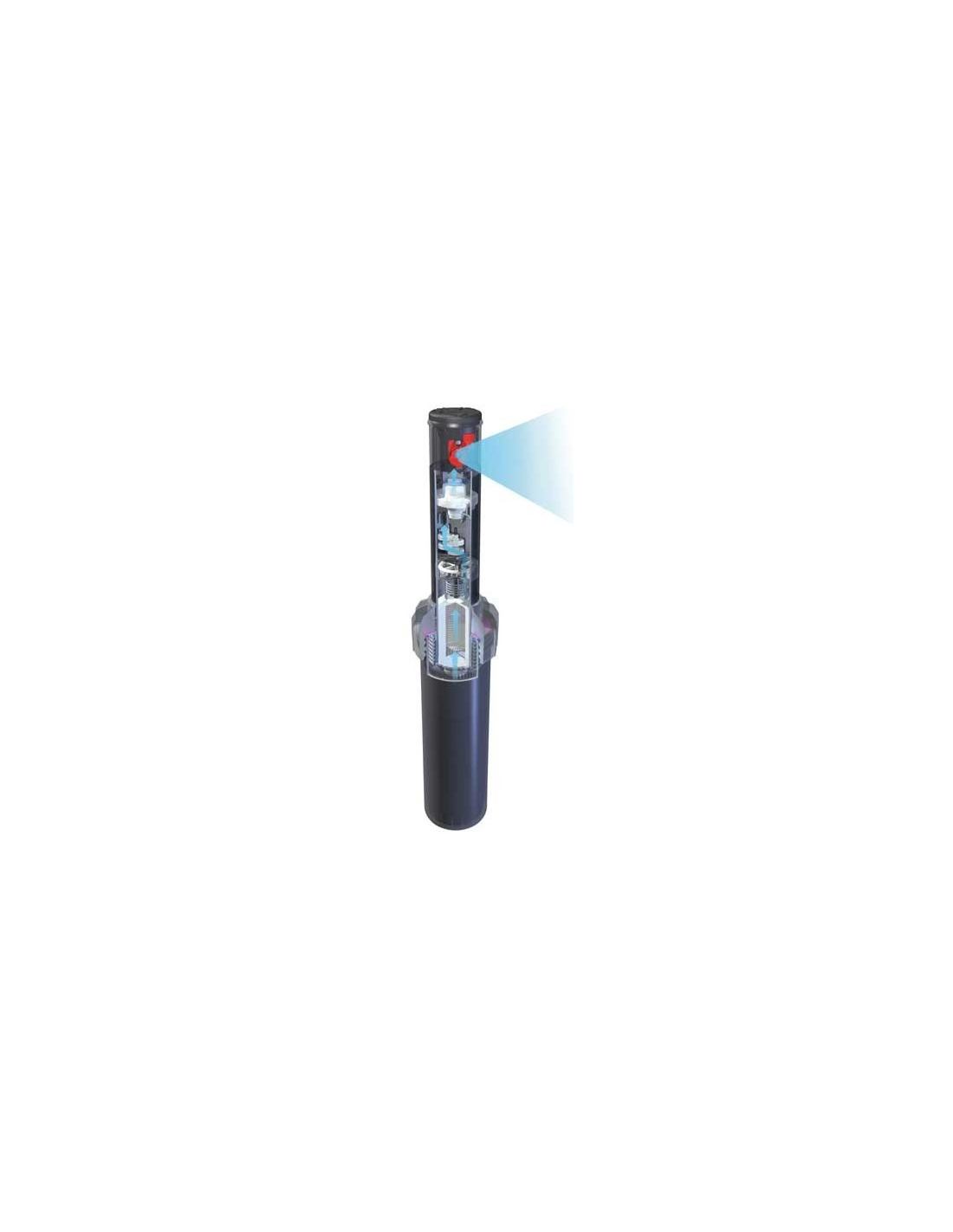 Aspersor serie PGJ de uso residencial, con turbina emergente de 10 cm con válvula antidrenaje. Regulación del sector de 40º a 360º con vástago de plástico.