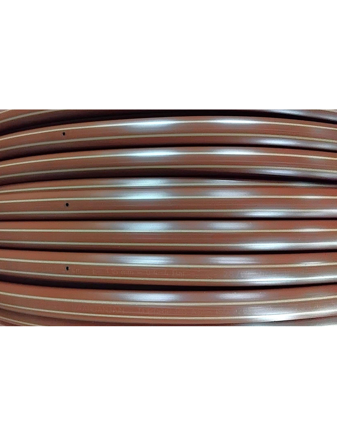 Tubería de PE 16 marrón de longitud 100m con goteros a 50 cm. Diseñada para sistemas de riego por goteo de alto rendimiento en jardines, huertos e instalaciones profesionales.