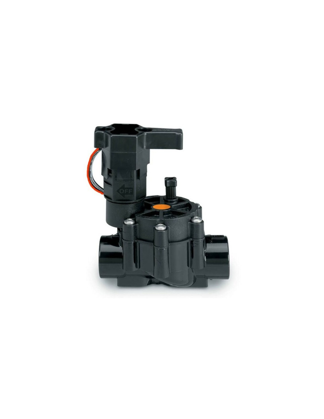 Electroválvula de ¾" rosca hembra, diseñada para sistemas de riego por goteo y aplicaciones de bajo caudal. Equipada con un solenoide 9V, es compatible con programadores a batería, lo que la hace ideal para instalaciones sin acceso a corriente eléctrica.