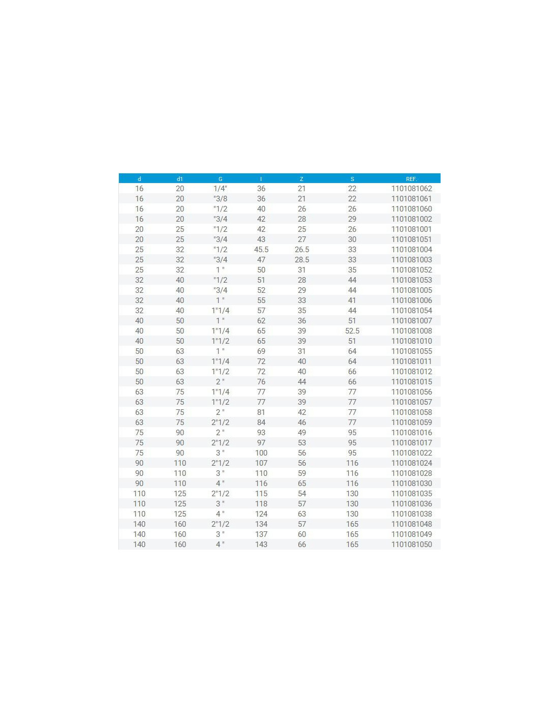 Medidas d: 50 mm; d1: 63 mm ; G: 2"