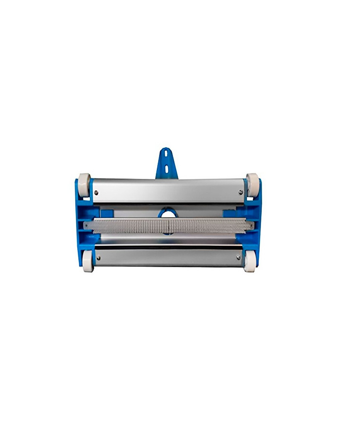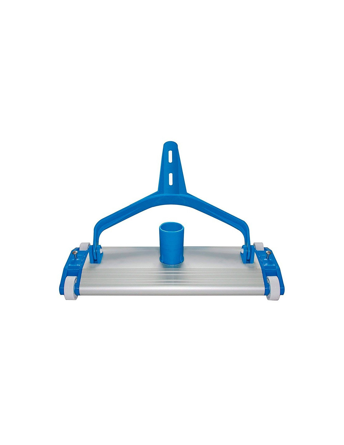 Limpiafondo manual metálico para piscinas, ancho de 335mm. Con 4 ruedas para un desplazamiento suave y preciso por el fondo de la piscina.