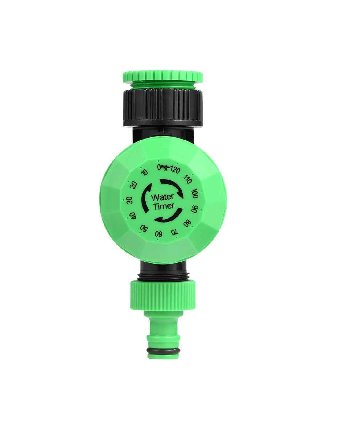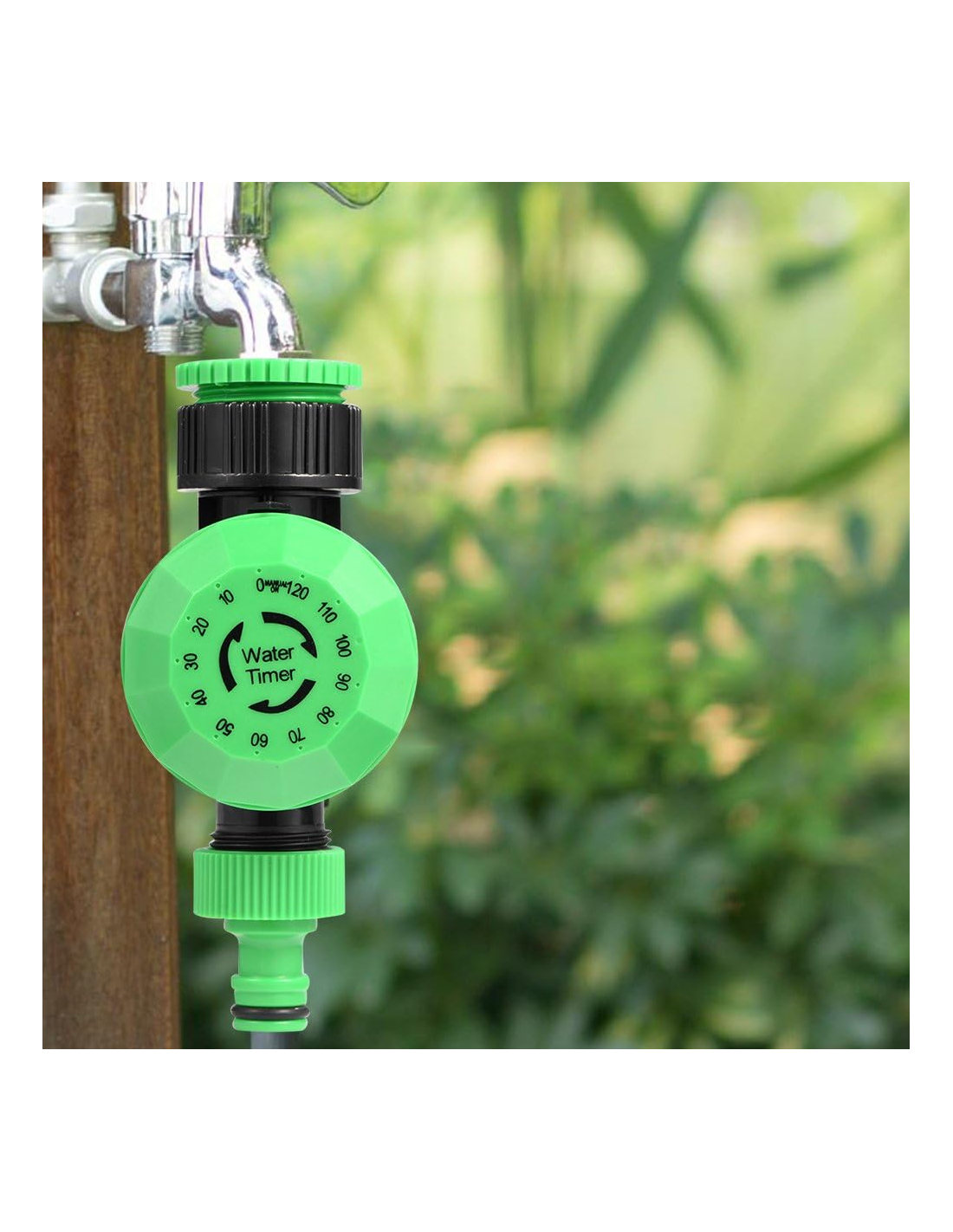 Este temporizador programa los minutos de riego mediante dial giratorio de fácil uso y cierra automáticamente el paso del agua una vez cumplido el tiempo seleccionado, con un máximo de 120 minutos. Ideal para sistemas de riego por goteo, aspersores, huertos urbanos y macetas.