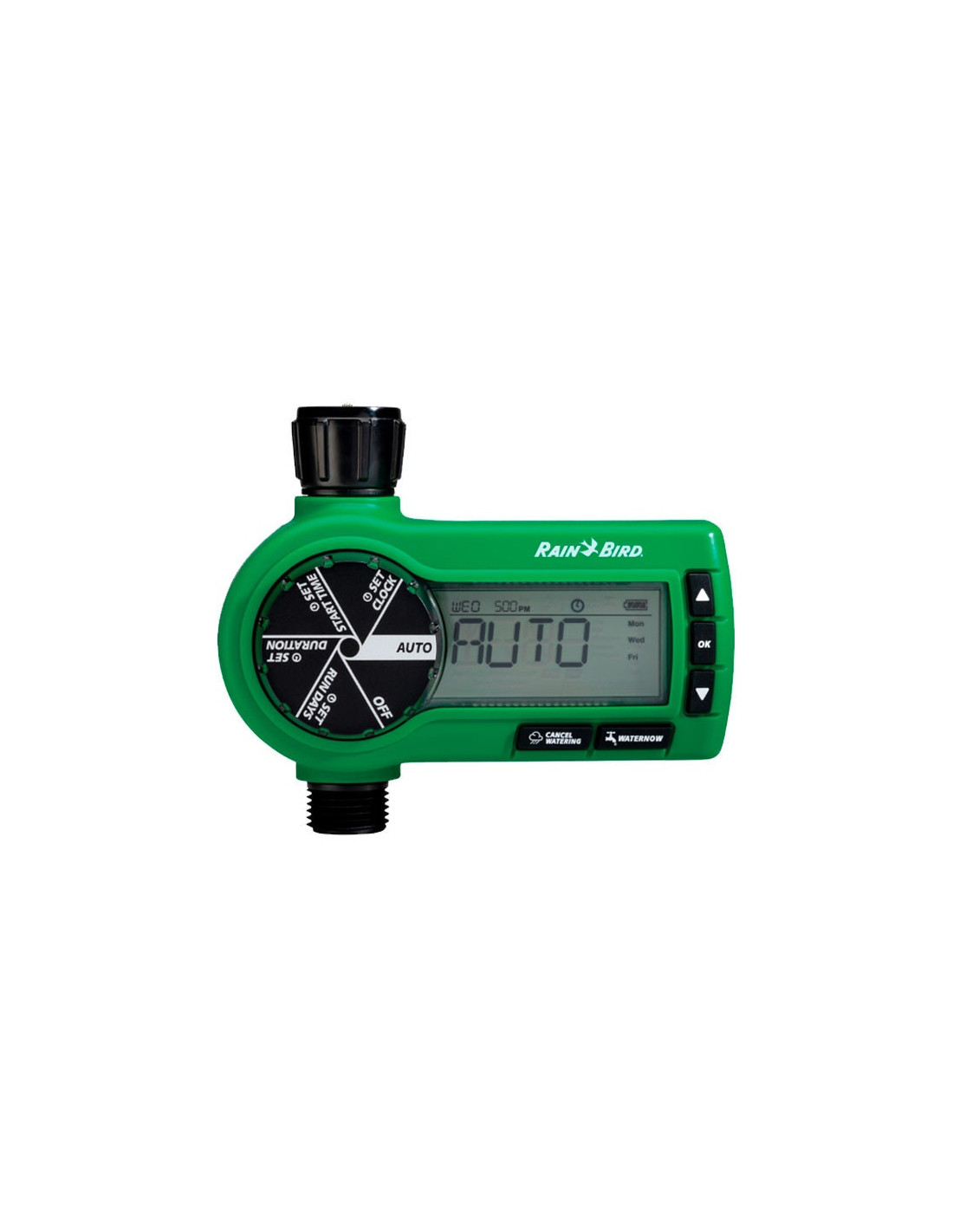 El Rain Bird 1ZEHTMR es un programador de grifo digital diseñado para automatizar el riego en jardines, huertos y parterres, especialmente en sistemas de riego por goteo o aspersores conectados a una manguera. Su instalación directa en el grifo y su funcionamiento a pilas lo hacen ideal para zonas sin acceso a electricidad. Con botones específicos de: Demora por lluvia inmediata (cancelar el riego) y el agua ahora (riego manual). Retraso por la lluvia específica hasta 96 horas y duración del tiempo de riego de 1 minuto a 6 horas.