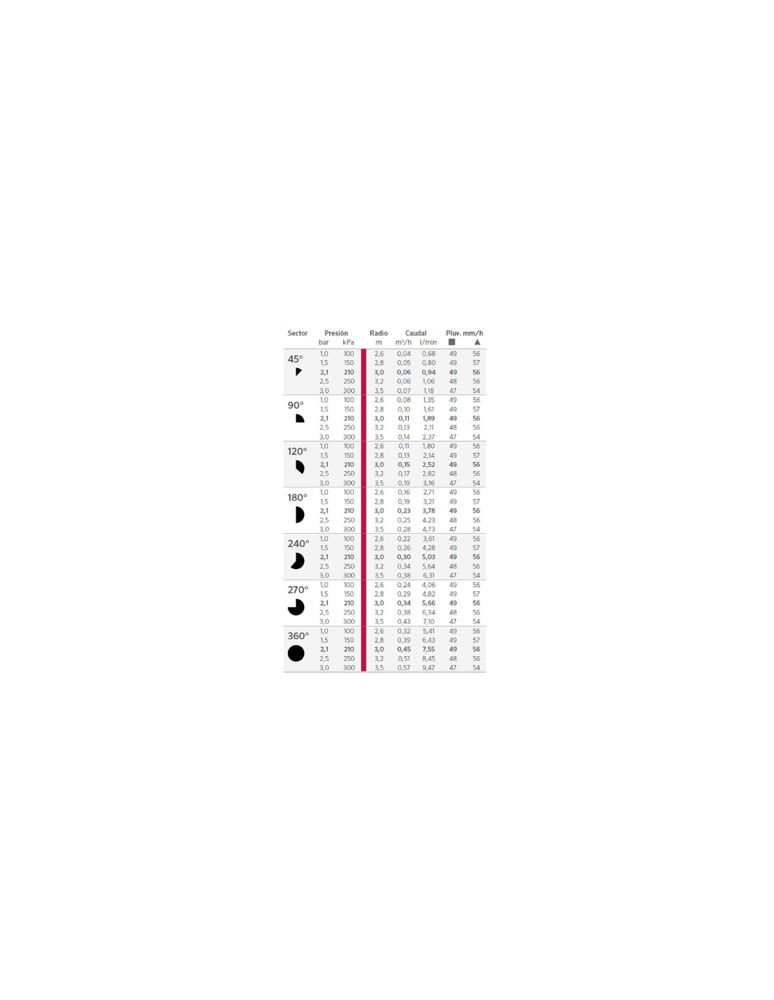 - desde 0.04 - 0.57 m³/h