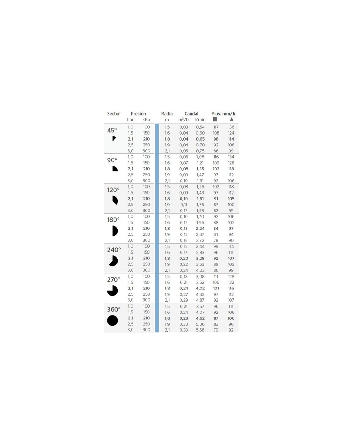 - alcance máximo 0,33 m³h