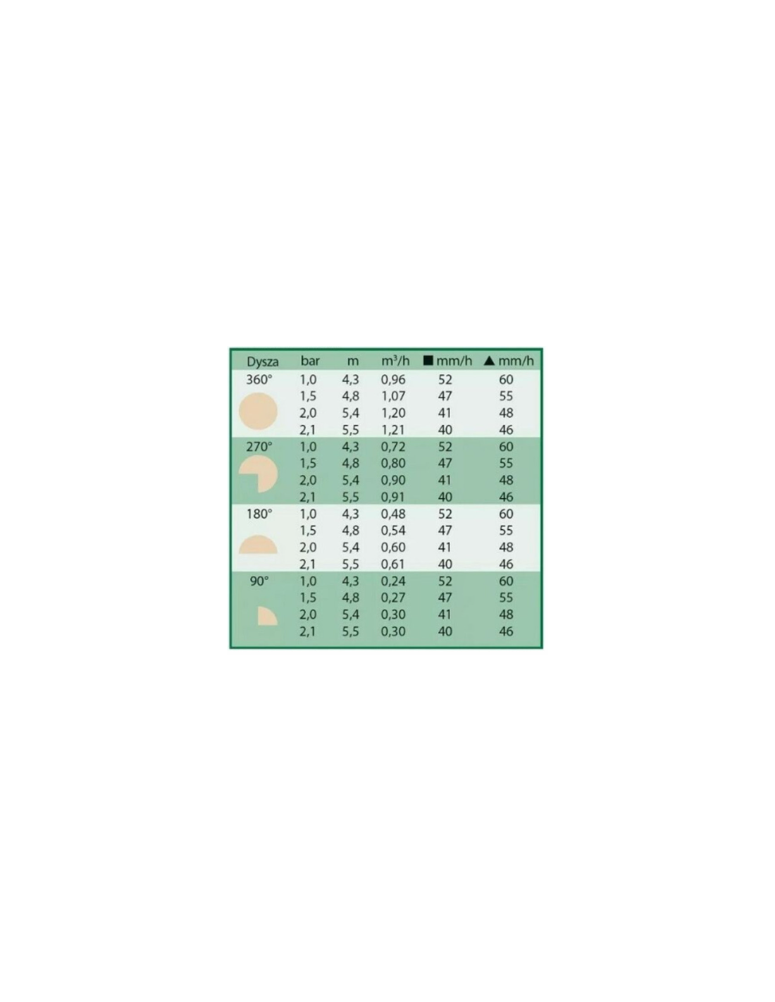 - de 0.24 - 1.21 m³/h dependiendo del ajuste del sector