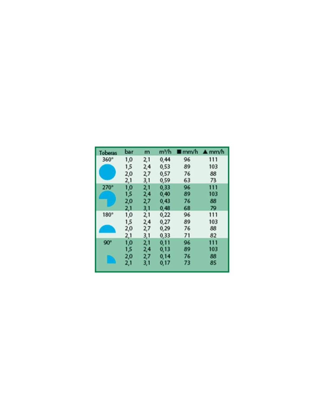 - 0.11 - 0.59 m³/h dependiendo del ajuste del sector