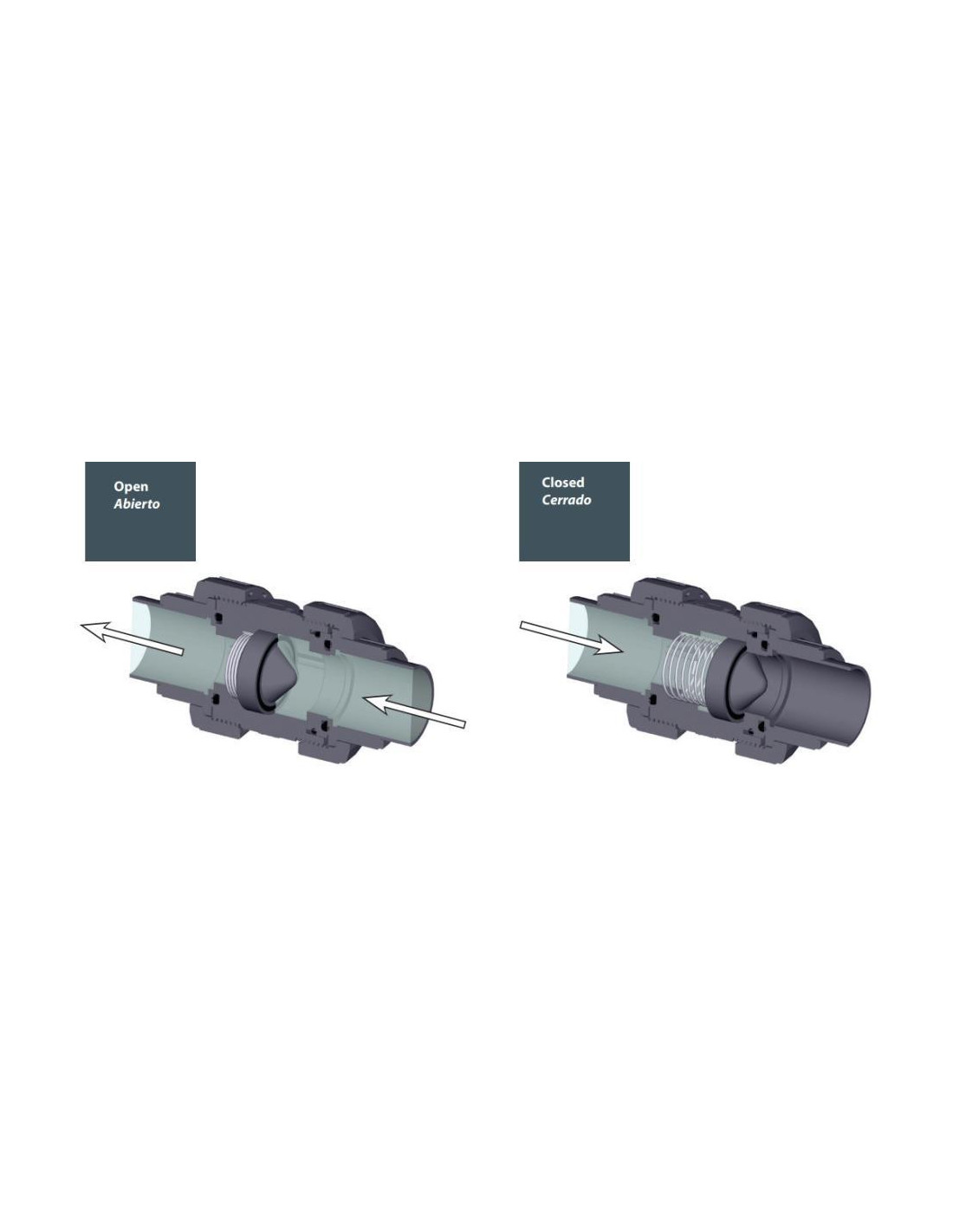 Válvula de retención con muelle y cono de cierre, cuerpo completo de PVC, medidas 63 mm salidas a encolar.
